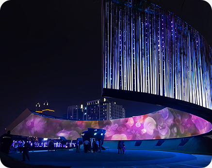 數字信息時代,華竣數創運用燈光秀、超清視頻、特種影院等新媒體視覺藝術的聲光影電炫酷效果調動觀者的所有感官全身心參與展廳視聽體驗,享受沉浸式心流狀態。